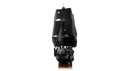 This movie replica model captures the ship in all its glory. Rotate dials to deploy the port or starboard cannons, turn the ship’s wheel to steer the rudder and open the deck to reveal the captain’s quarters with furnishings, candlesticks and an apple. Additional features include a detachable rowboat, a figurehead minifigure and a versatile stand for angled display. Alternatively, the hull can be split at the waterline to depict the ship in sailing mode.