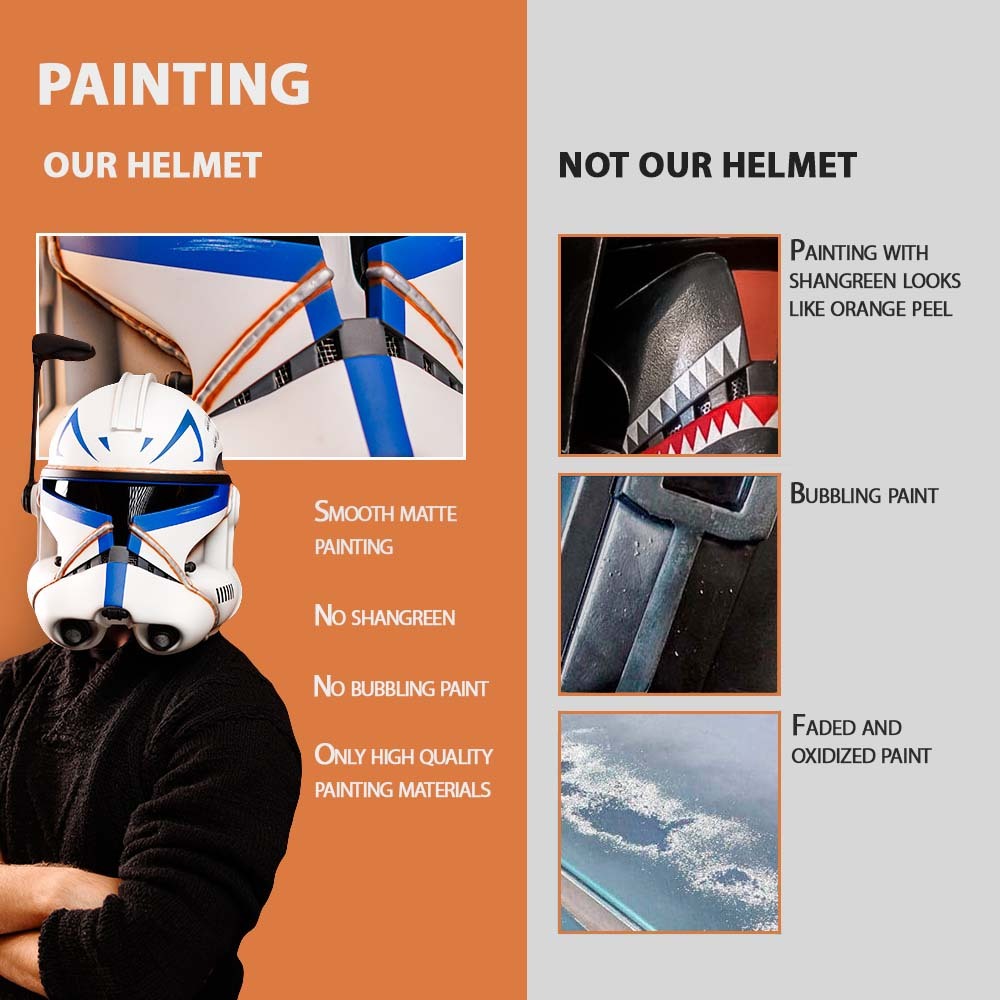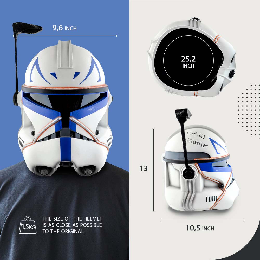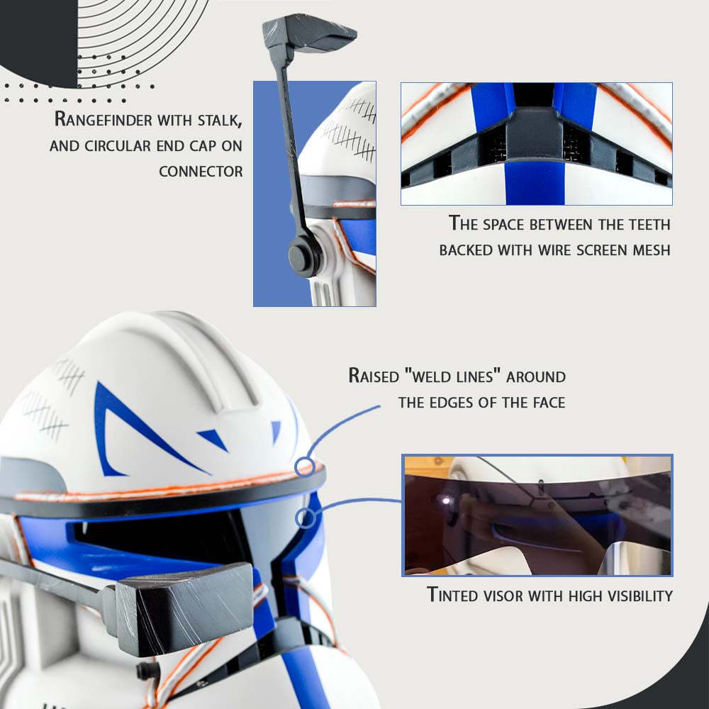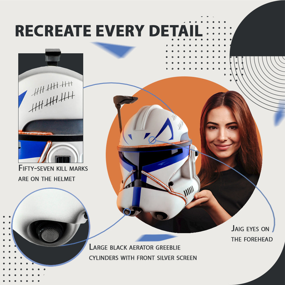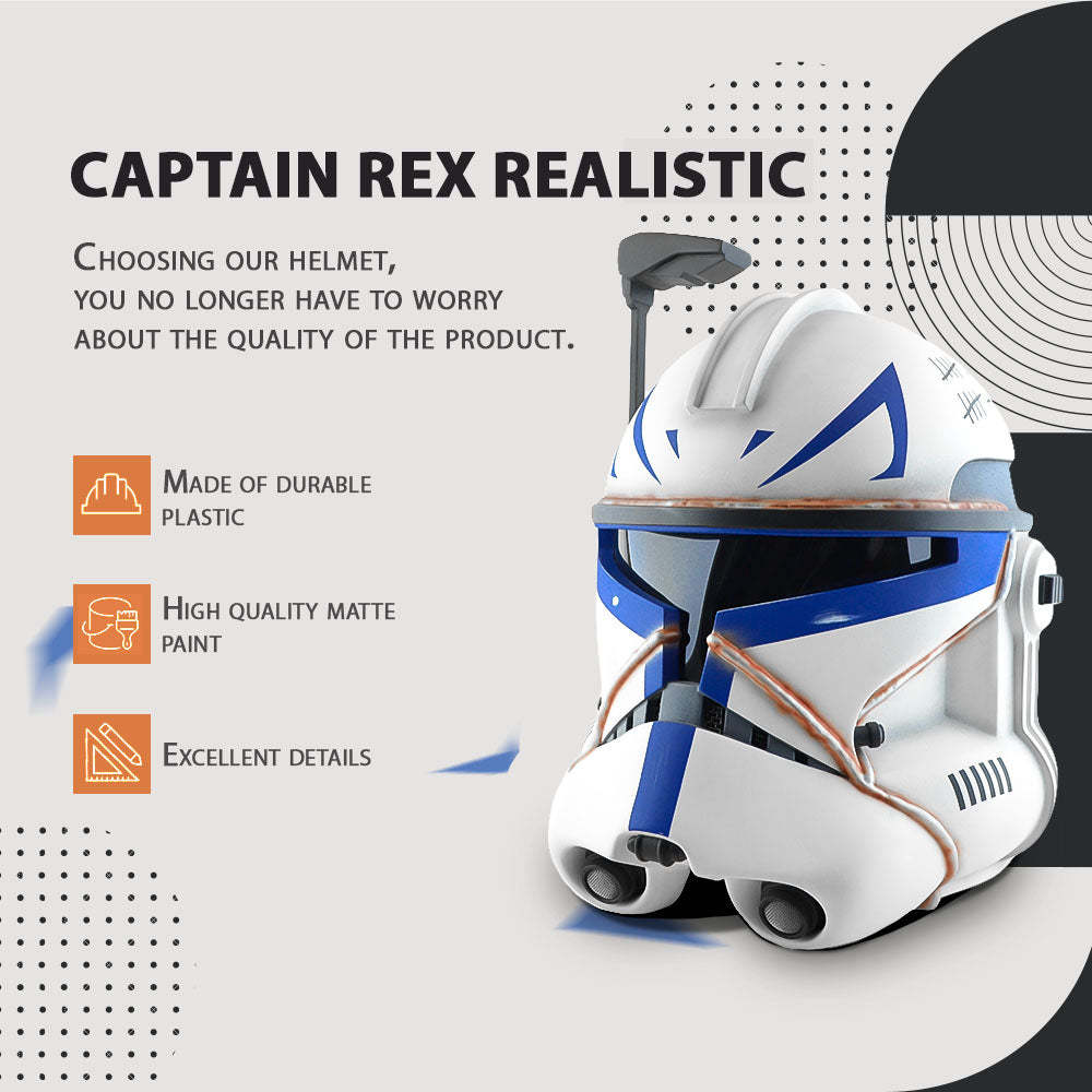 The Captain Rex Realistic Helmet, a highly detailed cosplay helmet from Star Wars, faithfully captures the appearance of Clone Trooper Captain Rex's Phase 2 helmet. This impressive Commander Helmet has been prominently featured in Star Wars films, immersing viewers in the heroic journeys of Captain Rex and his integral role in the galactic conflicts of the Star Wars universe.