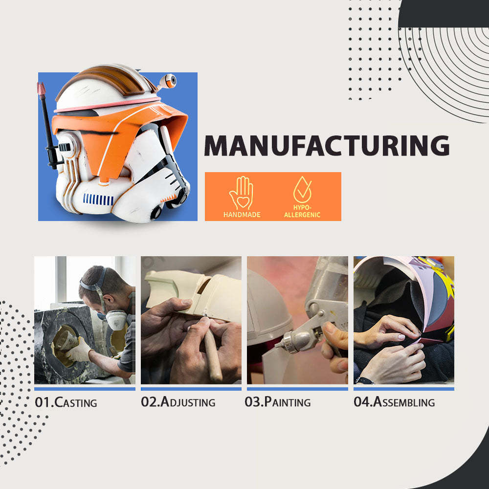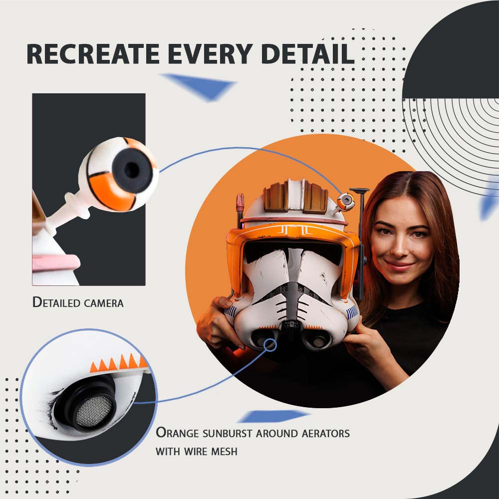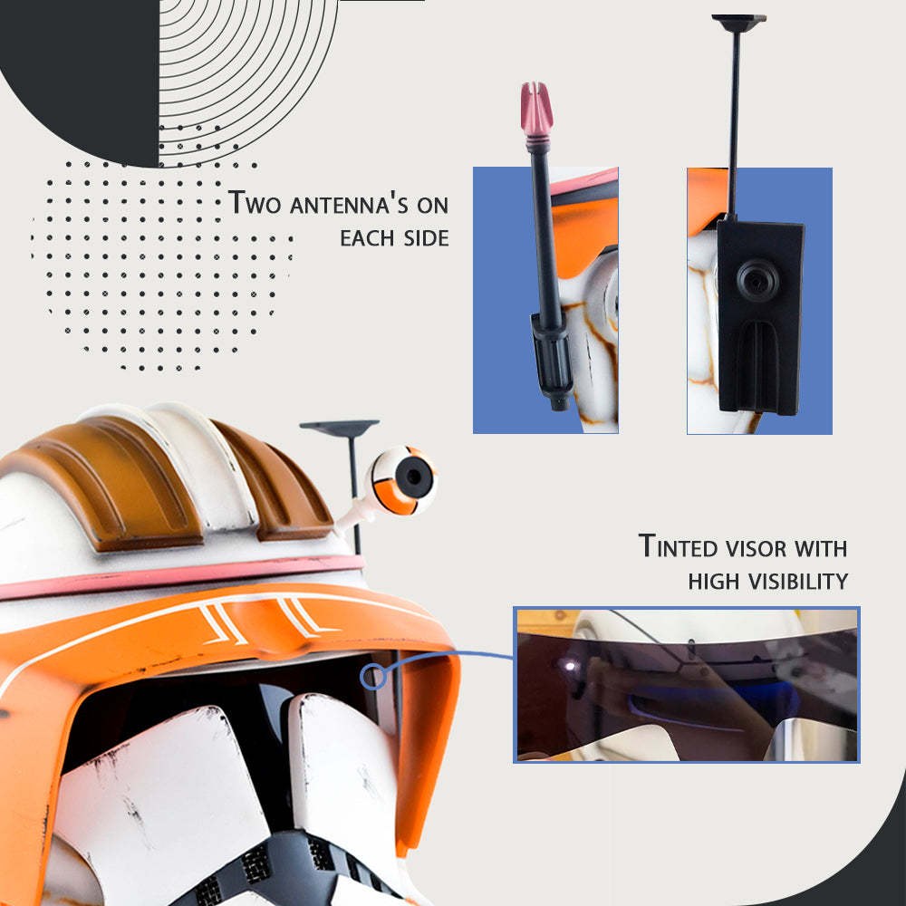 The Commander Cody Weathered Helmet, a remarkable cosplay helmet from Star Wars, represents the battle-worn look of Clone Trooper Commander Cody. This iconic Commander Helmet has been prominently featured in Star Wars films, showcasing Commander Cody's leadership and his crucial role in the galactic conflicts of the Star Wars universe.