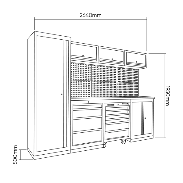 Este conjunto de muebles modulares para su taller está diseñado para ayudarle a mantener un ambiente ordenado y confortable.