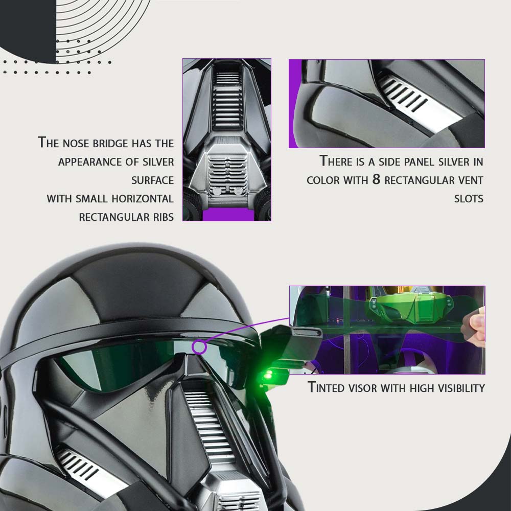 The Death Trooper Helmet, a striking cosplay helmet from the Star Wars universe, is closely associated with the formidable Imperial Troopers. This iconic helmet has been prominently featured in Star Wars films, symbolizing the menacing presence of the Death Troopers and becoming a sought-after item among fans of Star Wars helmets.