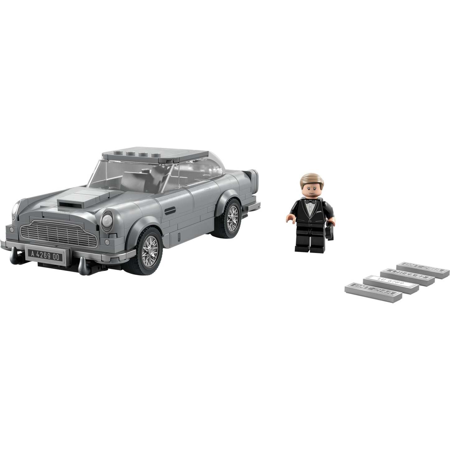 - What’s in the box? – Everything you need to build a LEGO® interpretation of the 007 Aston Martin DB5, plus a No Time To Die-James Bond™ minifigure with a toy wrench