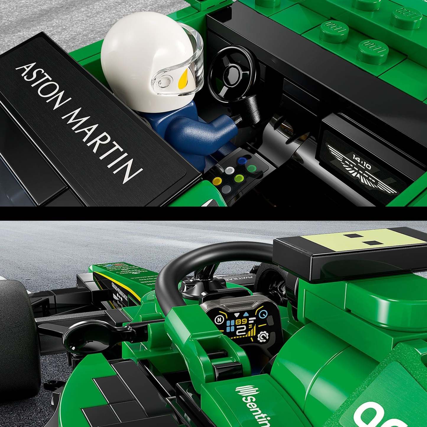 The Aston Martin Safety Car includes many authentic design details from the real-life version including the roof-mounted light bar, a lights control button sticker inside the cockpit and taillights, while the AMR23 toy race car has a safety halo, rear wing and sponsors’ logos. Each toy car also comes with a driver minifigure for kids to place behind the steering wheel and drive around the track.