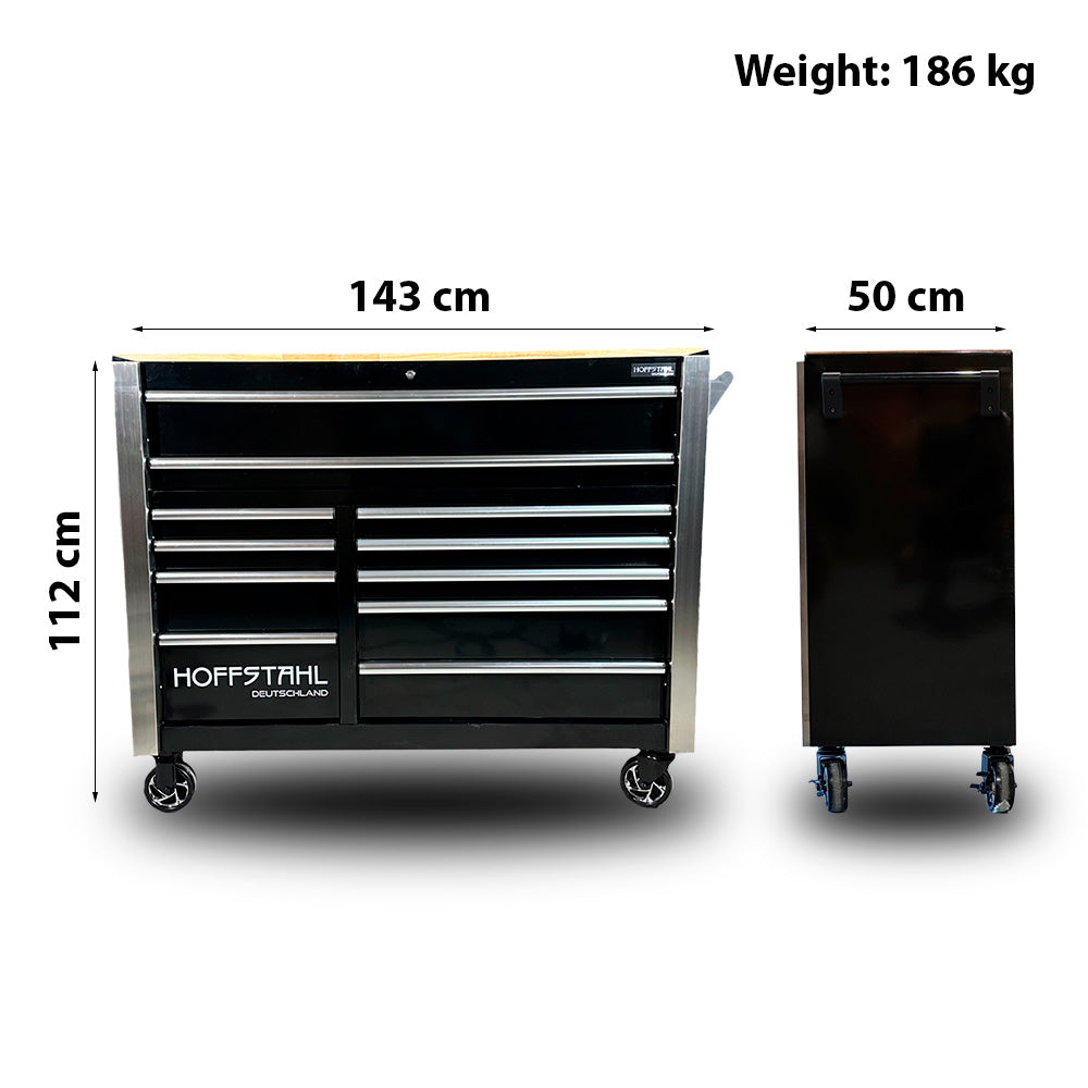 Szafa narzędziowa Hoffstahl – 11 szuflad, 9 wypełnionych narzędziami, 390 el.