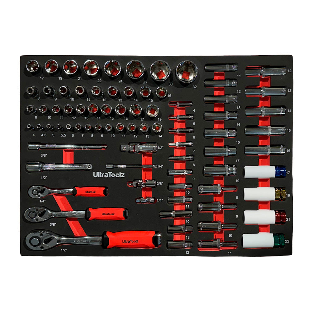 - Szuflada 1 – Klucze nasadowe i grzechotki