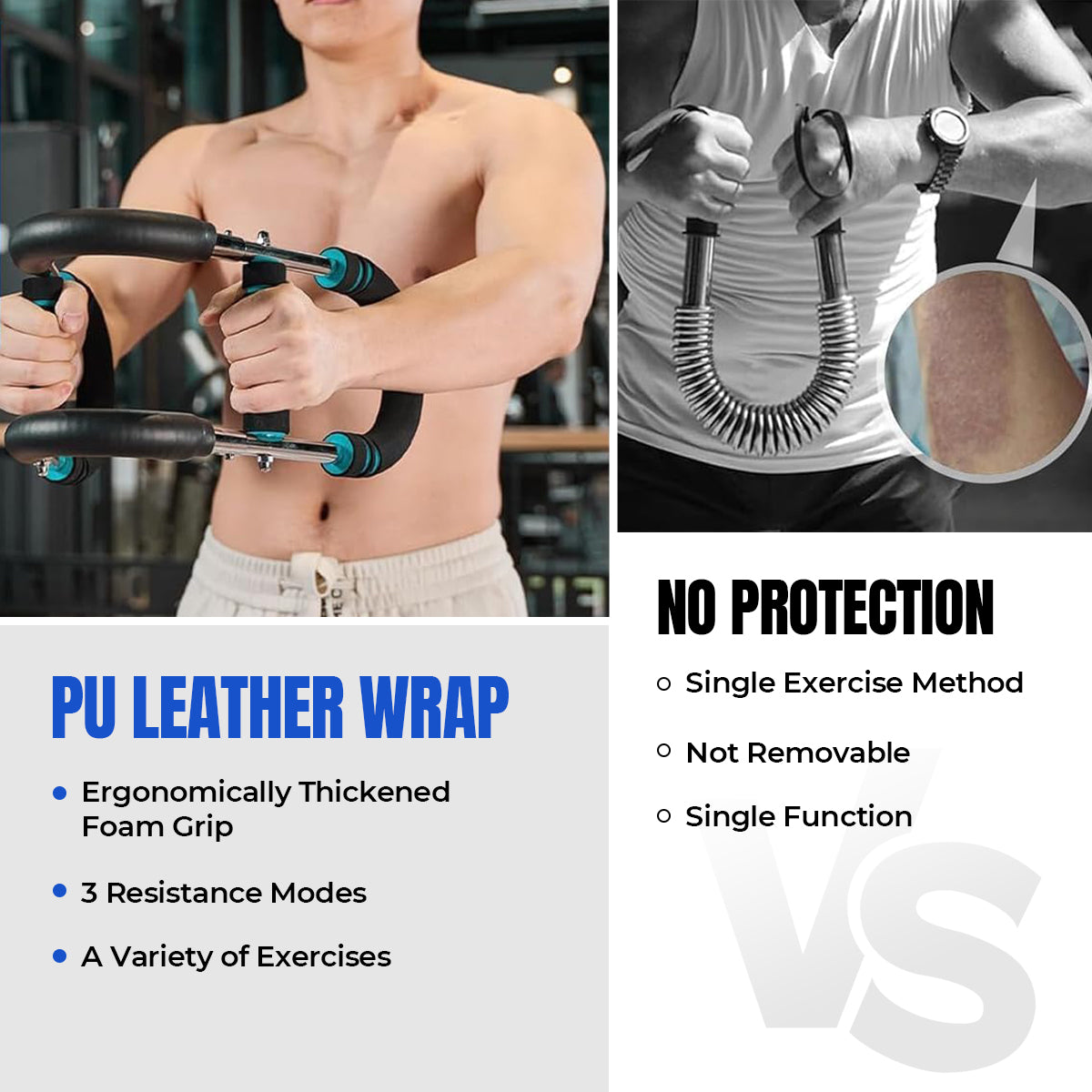 - Made with strong alloy steel and a high-tension spring, the Twister Arm Trainer is built to last. A soft PU leather cover reduces metal contact for safety, and the thick foam grip is comfortable and non-slip. It features 3 resistance levels (60–110 lbs) to match your workout needs.