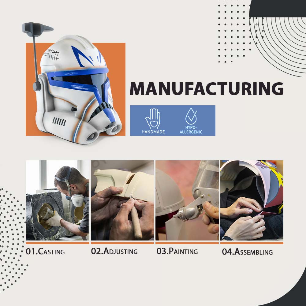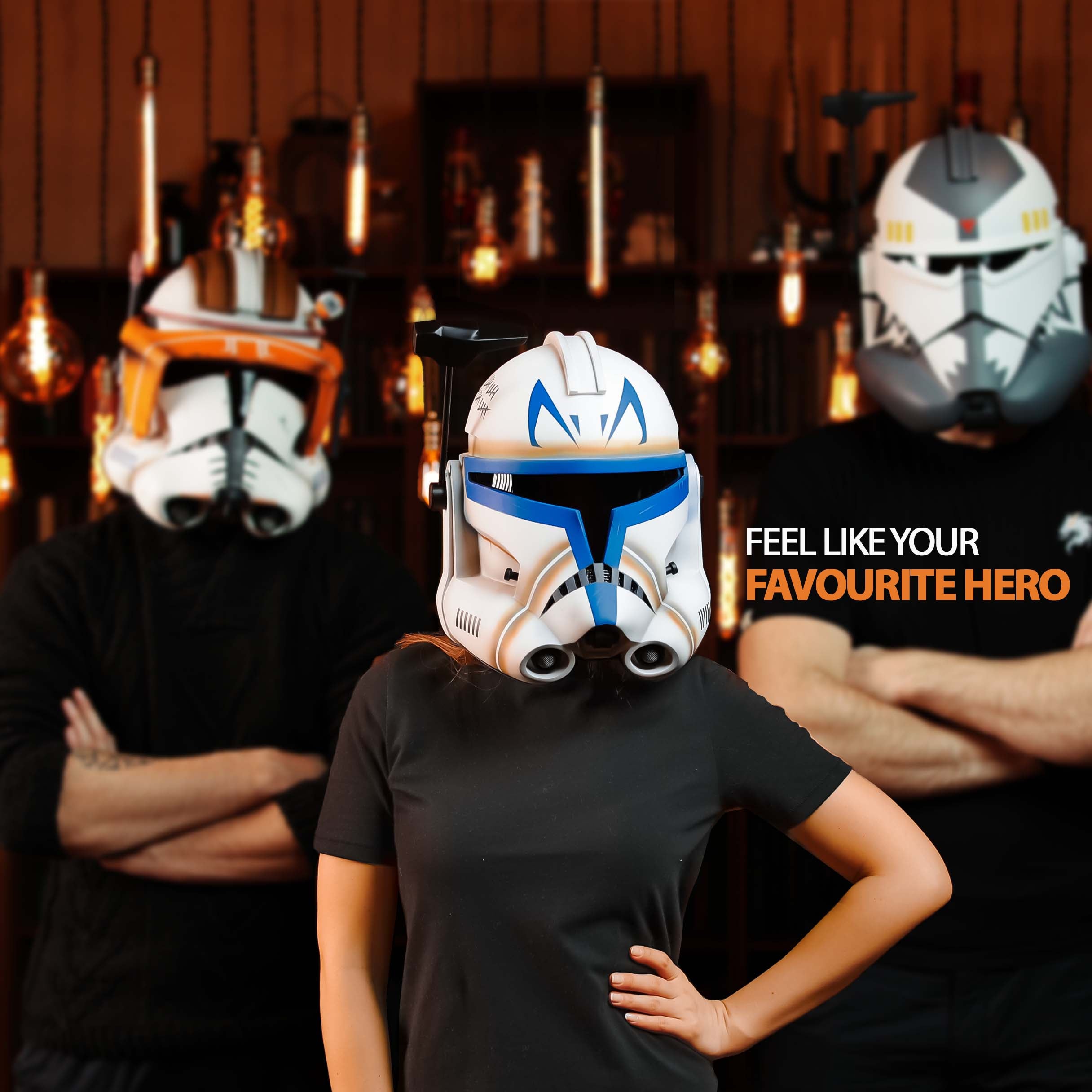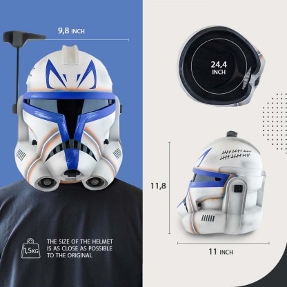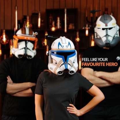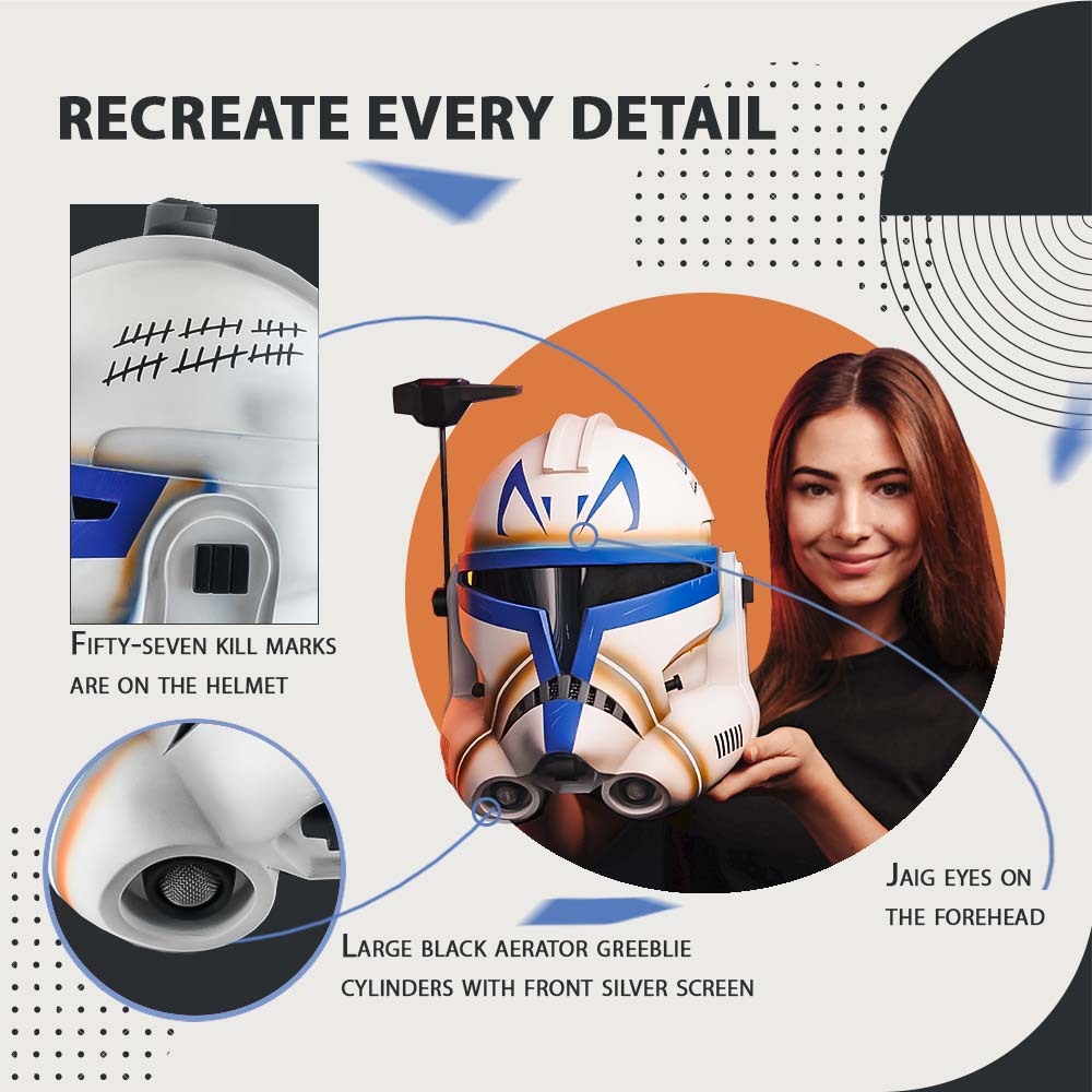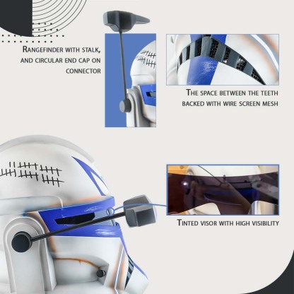 The Captain Rex Helmet, a remarkable cosplay helmet from the Clone Wars series in Star Wars, embodies the leadership and bravery of Clone Trooper Captain Rex. This iconic Commander Helmet has been prominently featured in the Clone Wars series, showcasing Captain Rex's heroic adventures and his integral role in the Star Wars universe.