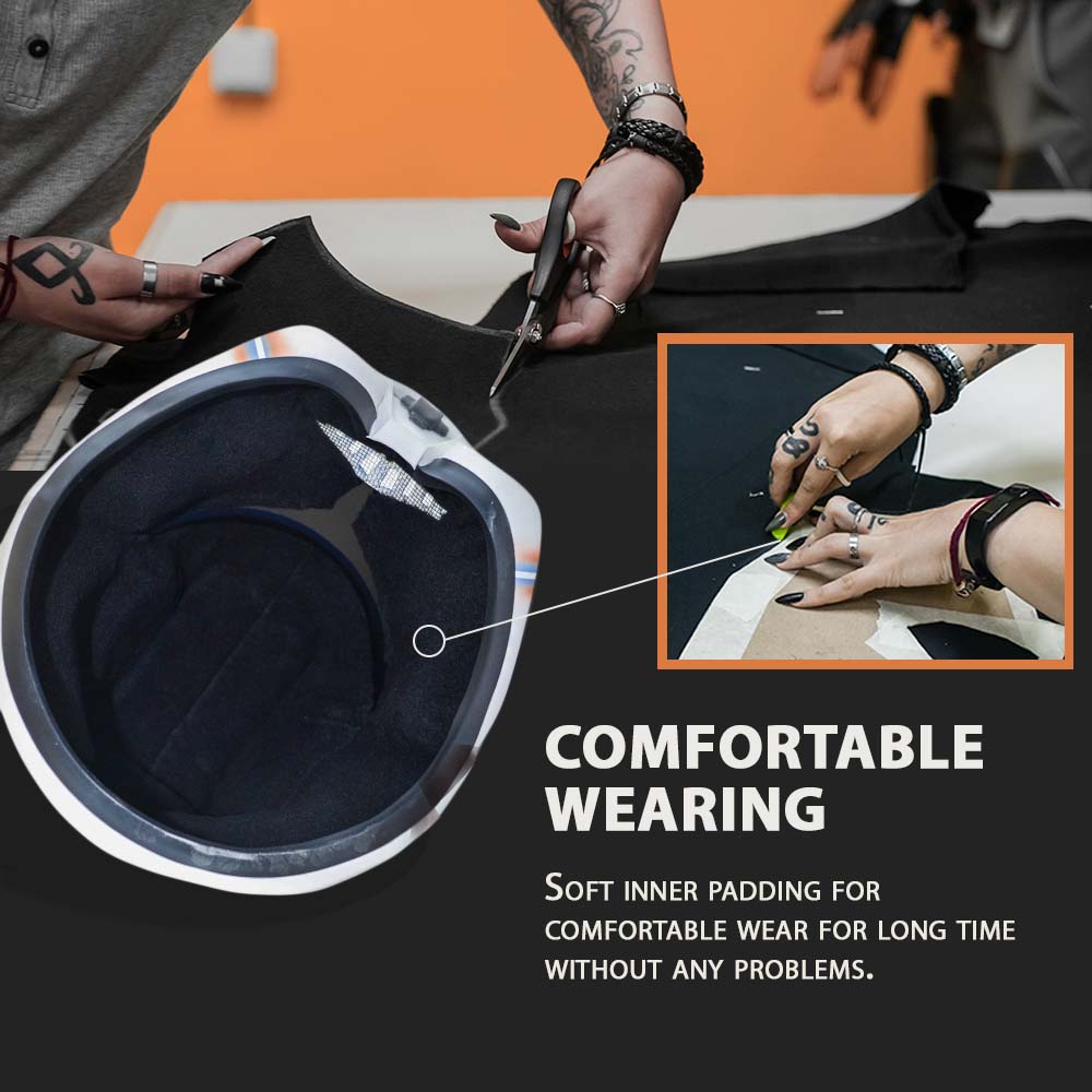 - Inside - fits the head of an average adult with a head circumference of up to 63 cm.