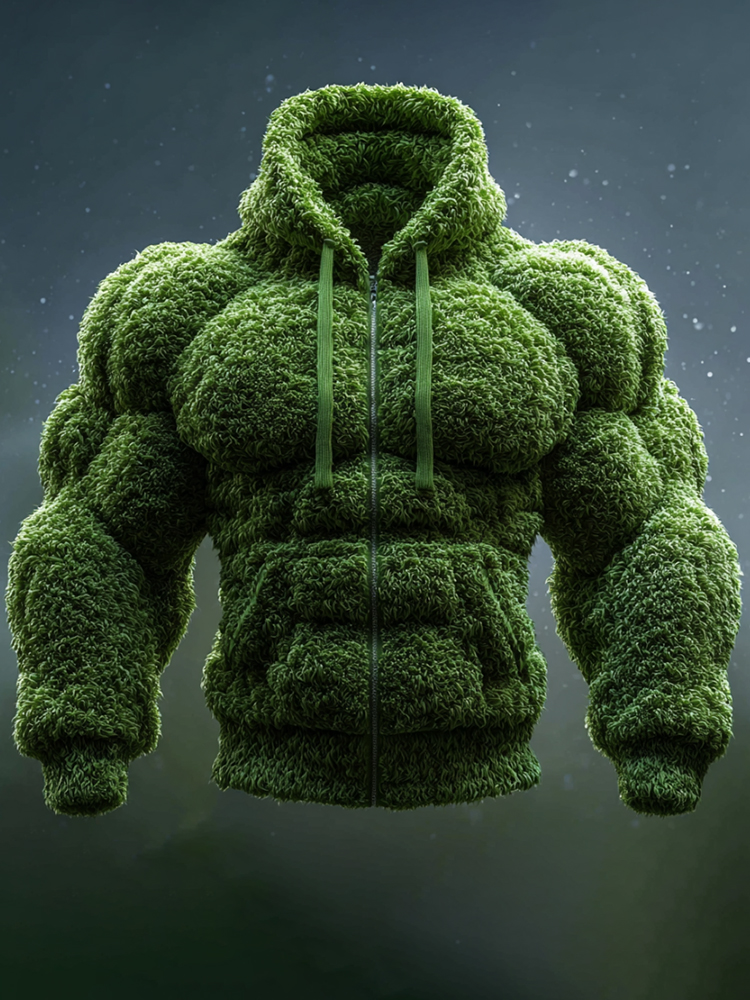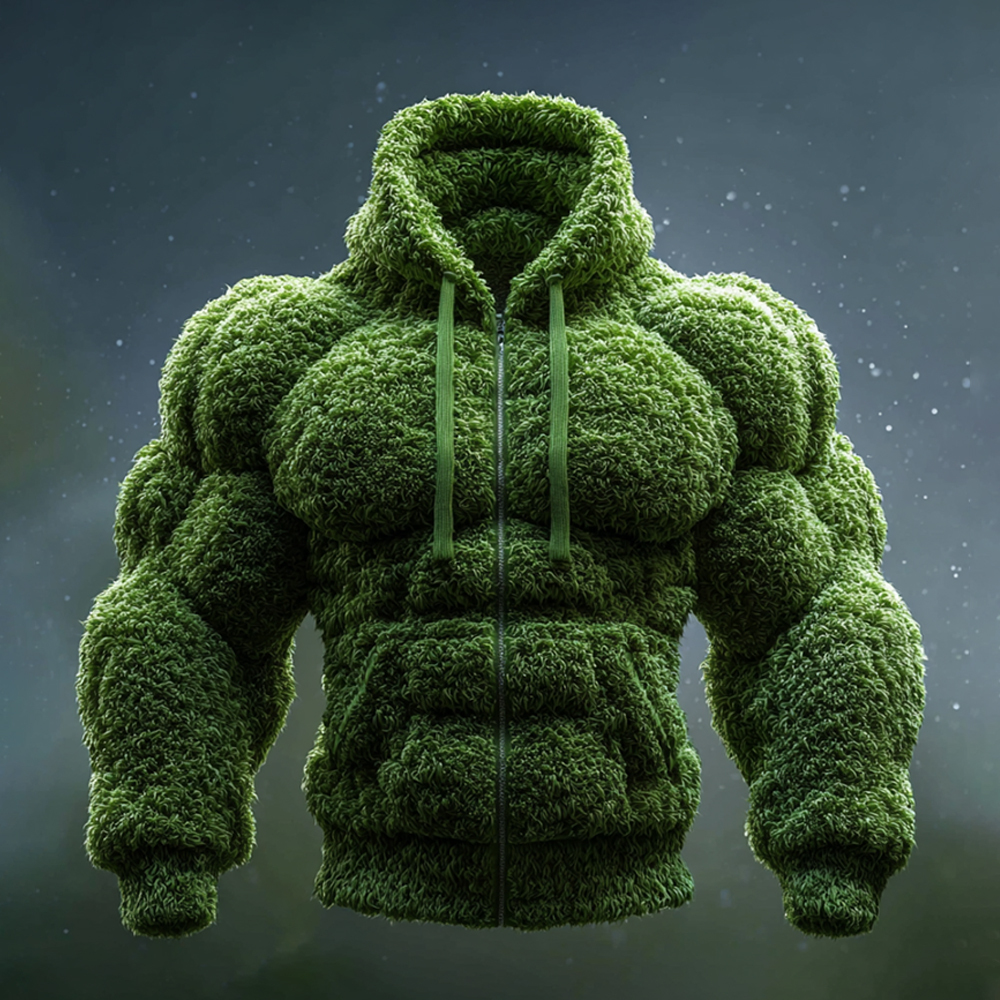 Christmas Muscle Art Plus Velvet Thick Cardigan Hooded Sweatshirt
