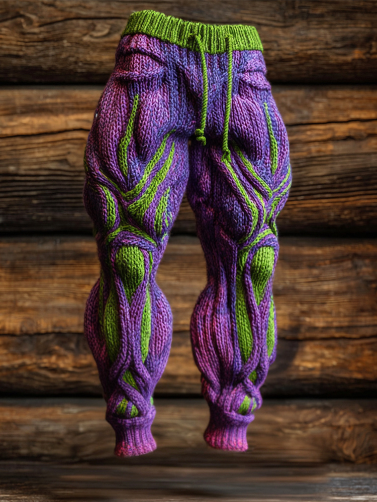 Christmas Muscle-shaped & Vein-patterned Art Men's Knit Pants