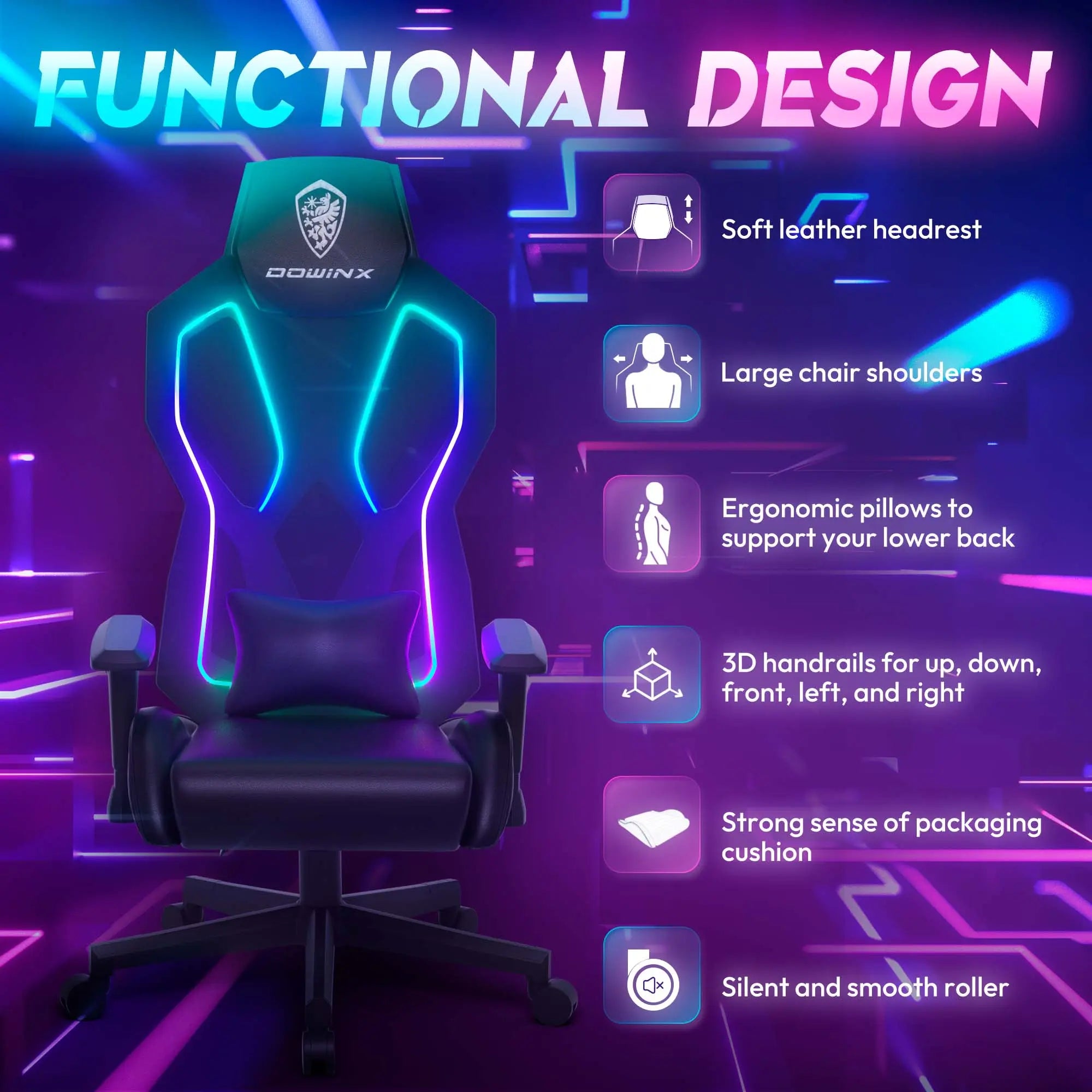 - Over 225 preset RGB modes for an intense gaming experience. Immerse yourself in the gaming world with our RGB gaming chair. LED lights controlled via a remote control or mobile app create an atmosphere that enhances the computer gaming experience and makes it truly immersive and unforgettable.