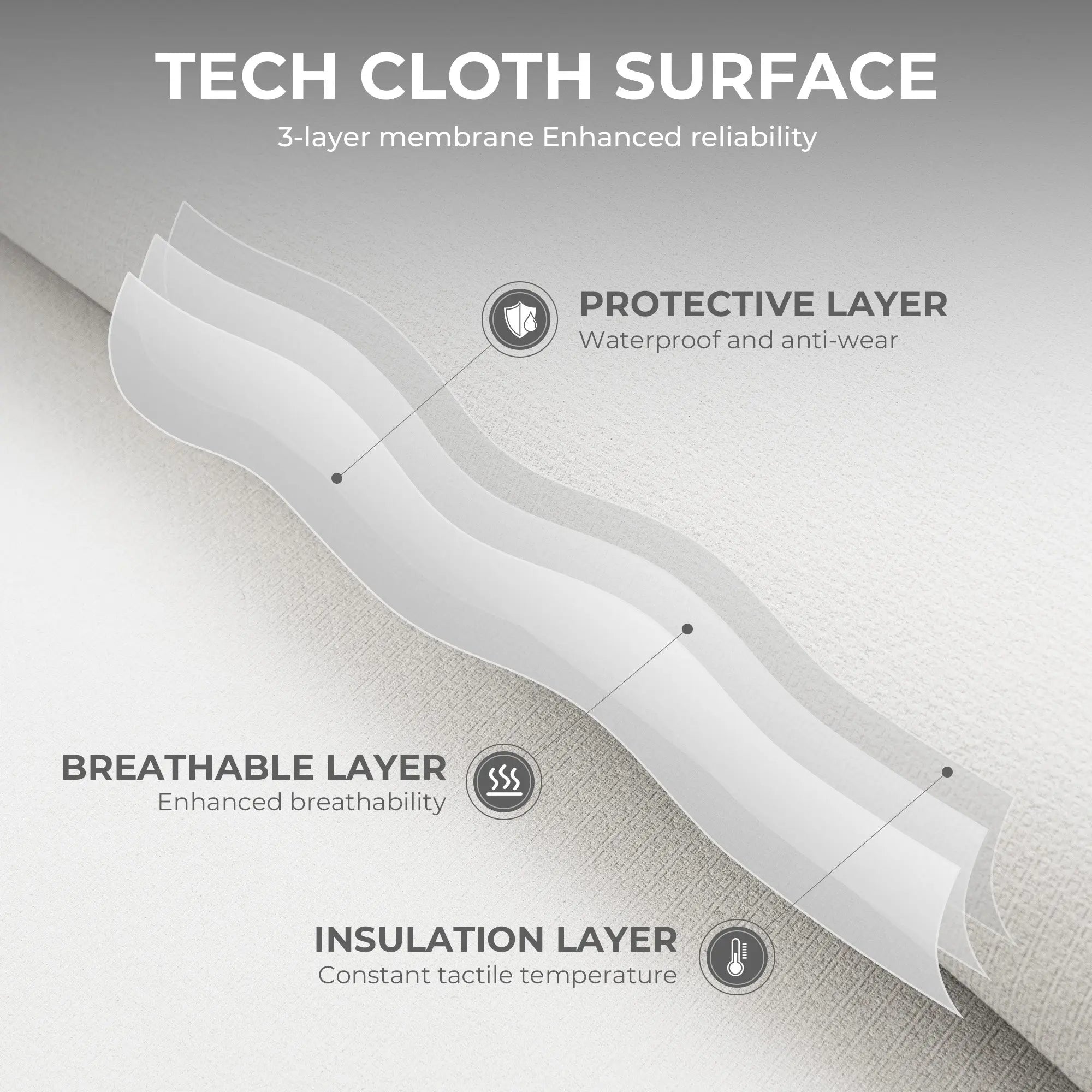 - Breathable Tech Cloth Surfaces: This executive office chair is made of premium tech cloth fabric, which gives it a luxurious look while ensuring breathability. The breathable fabric surface promotes airflow, maintaining a pleasant temperature and preventing the accumulation of heat and moisture. And the tech cloth is able to withstand daily wear and tear without showing signs of damage or deterioration.