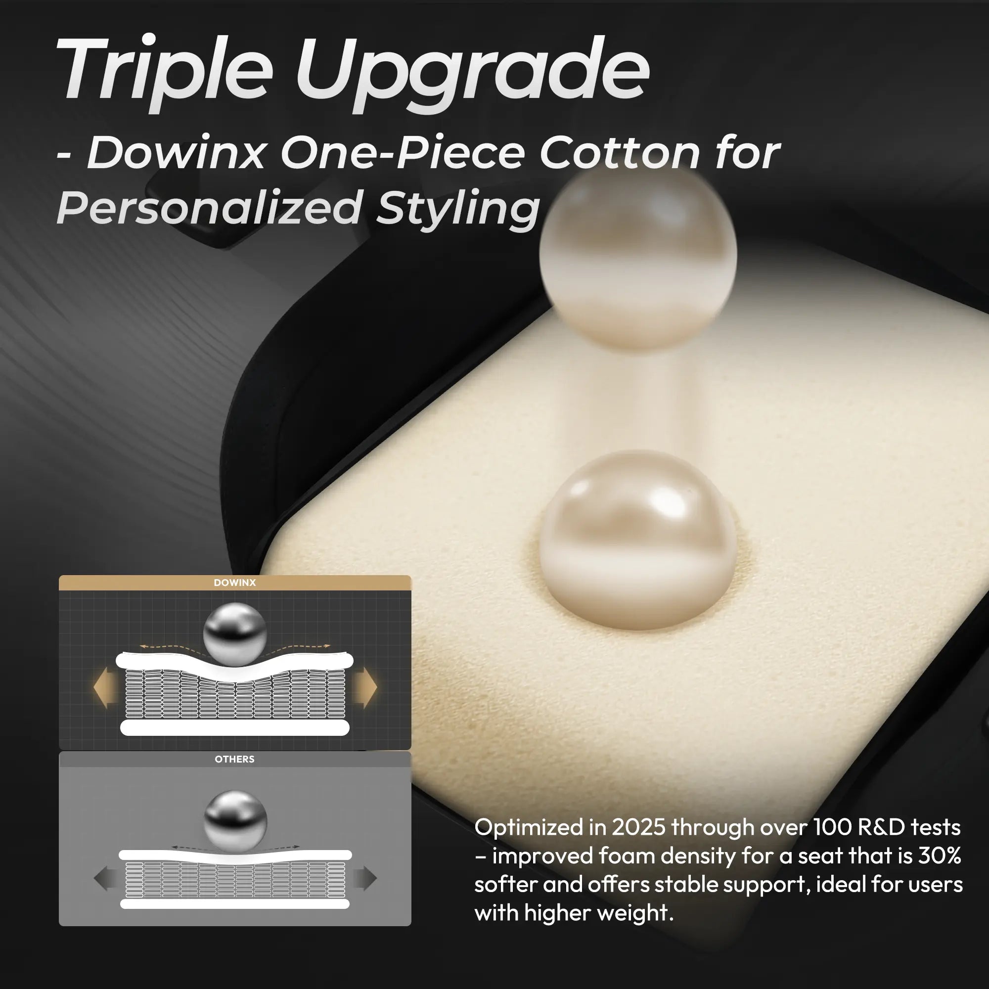 Triple upgrade One-Piece foam cushion with higher foam density, softness is increased by 30%