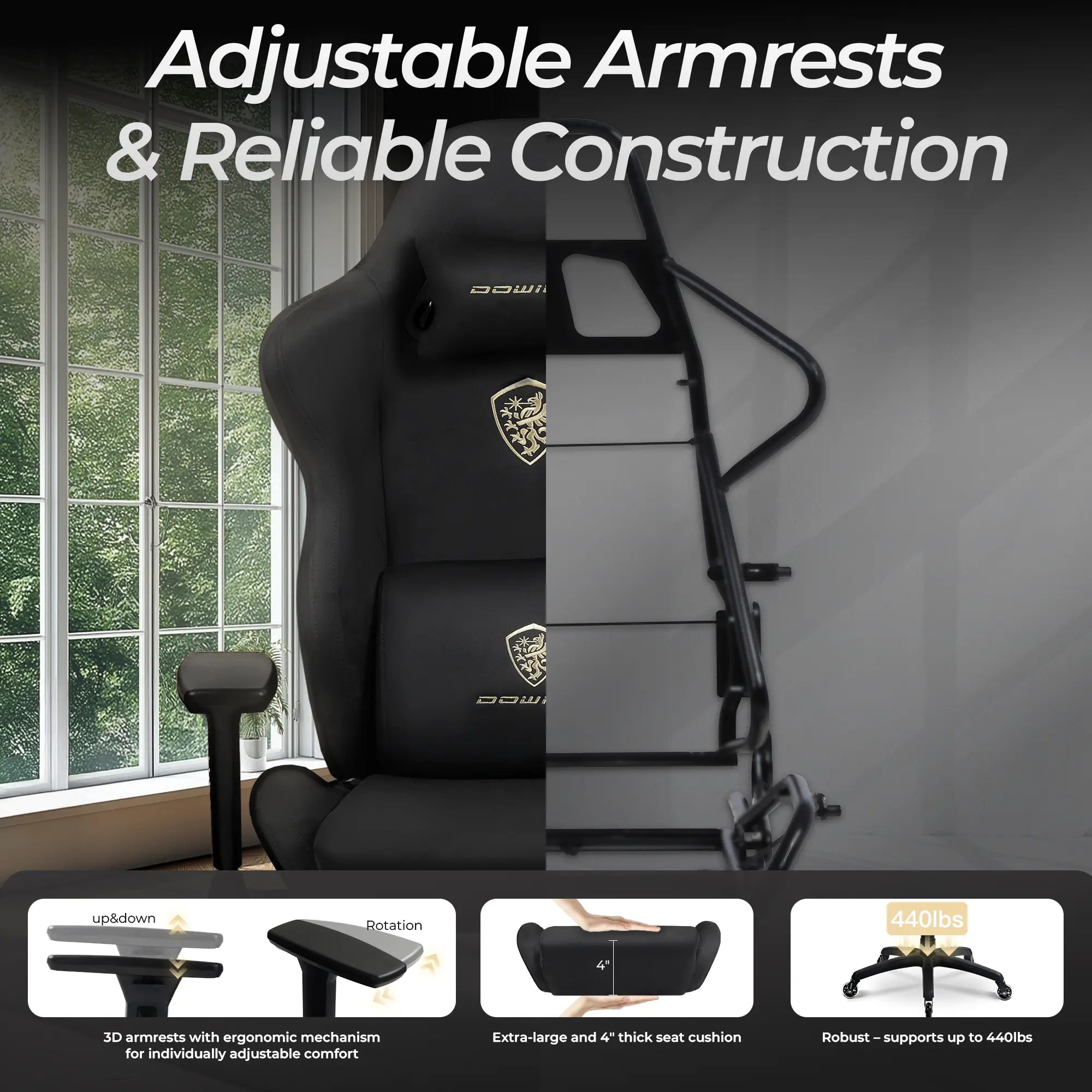 Heavy-duty 3D armrests, switch up, down, left, and right at will