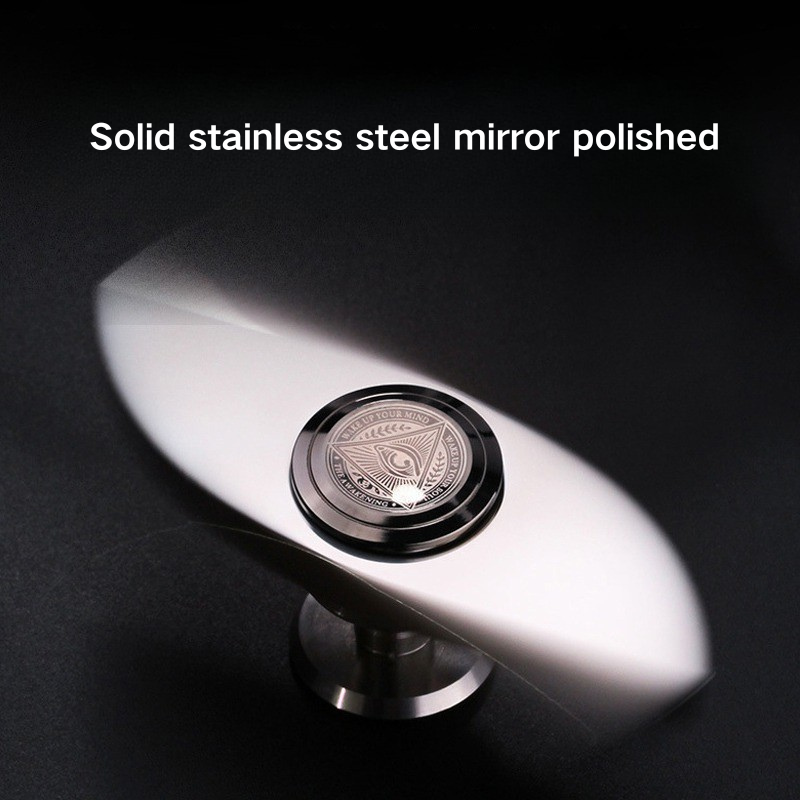 Solid stainless steel construction with tactile concentric grooves. The iconic "Eye of Power" engraving remains discreetly unbranded, rotating with whisper-quiet smoothness.