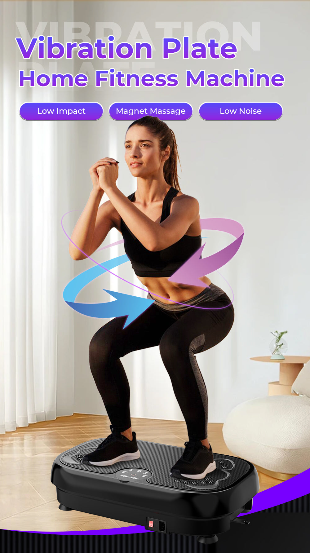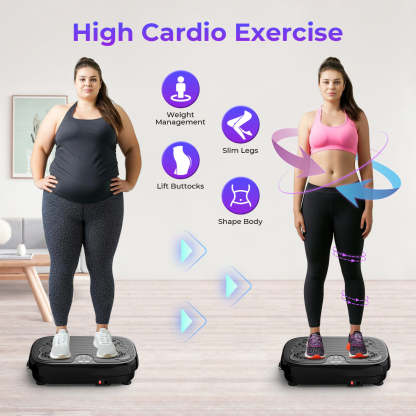 The vibration plate creates rapid movements that cause your muscles to contract and relax multiple times per second. This engages more muscle fibers than traditional exercises. The addition of resistance bands allows for a wide range of upper body exercises, providing a full-body workout experience.