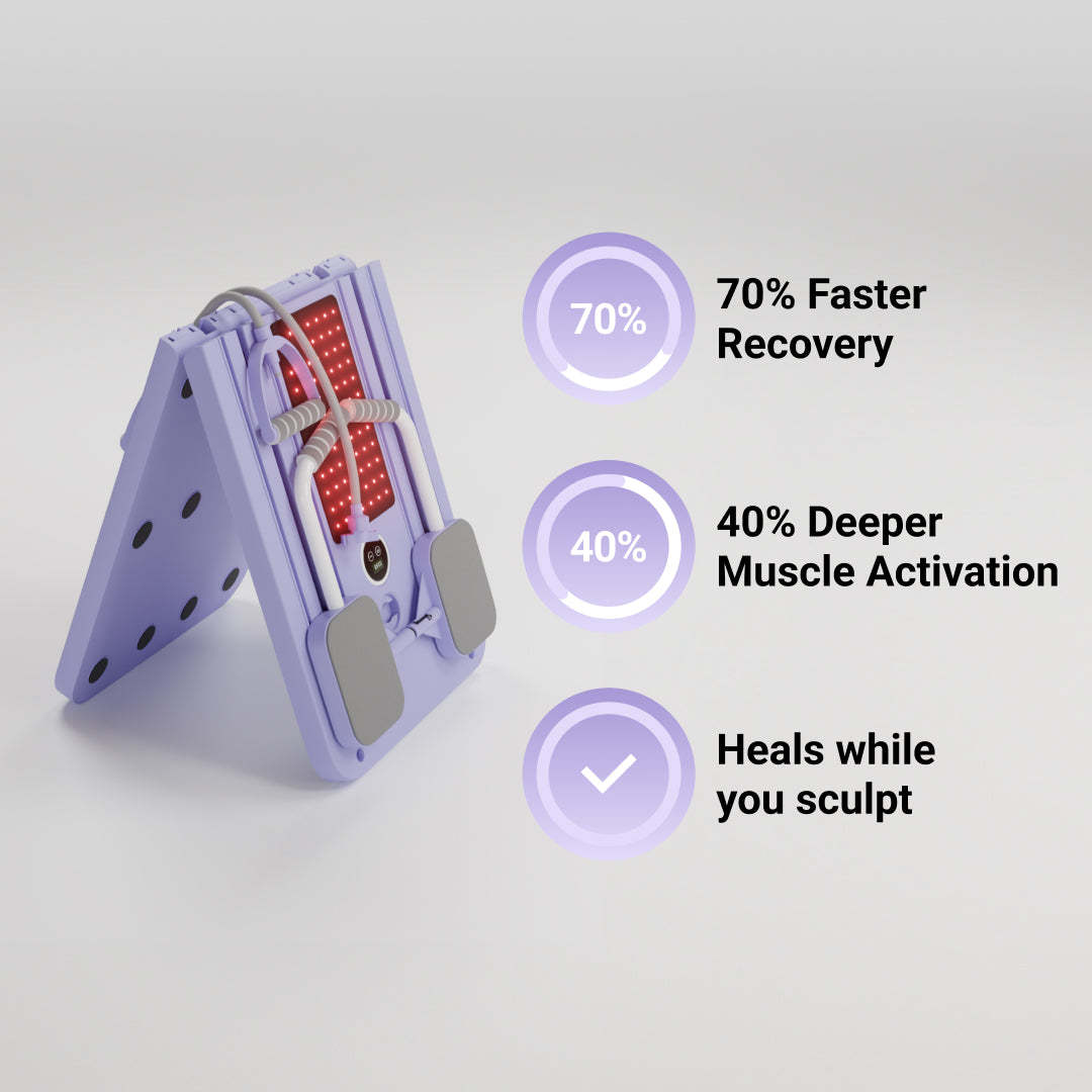 Core: Strengthen your core while infrared heat enhances muscle activation, get deeper engagement without working harder.Glutes: Shape and lift your glutes as red light therapy smooths skin texture and reduces the appearance of cellulite.