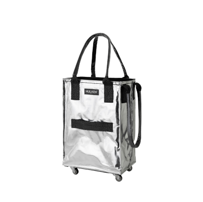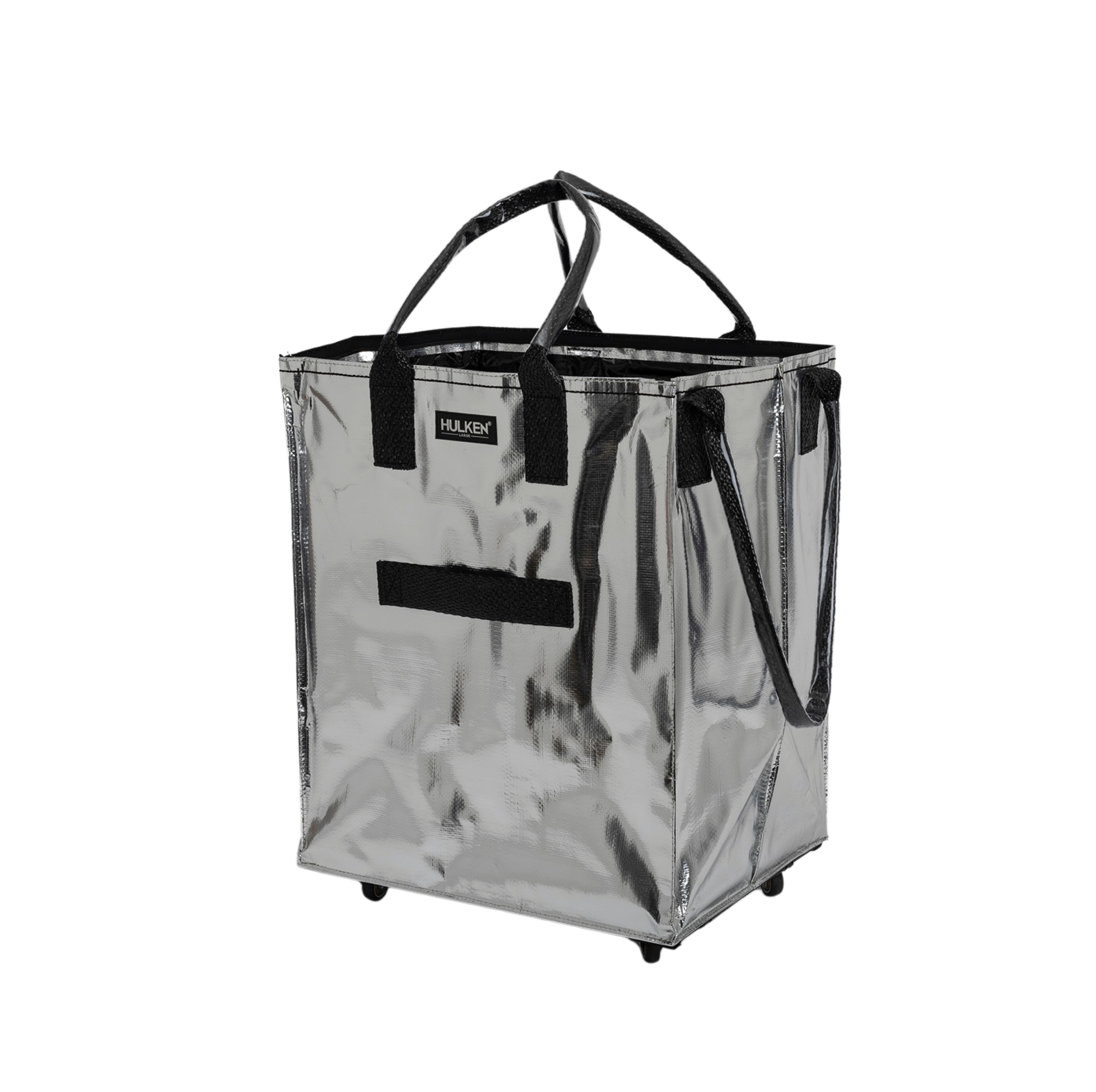 Meet the Hulken Silver, a rolling tote that combines industrial strength with futuristic shine. Made from durable, water-resistant materials and designed with smooth-glide wheels, it’s perfect for everything from office commutes to urban shopping hauls. The minimalist silver finish gives it a high-tech vibe, while the fold-flat design makes storage a breeze. Choose from Small, Medium, or Large and let this tote lighten your load in style.