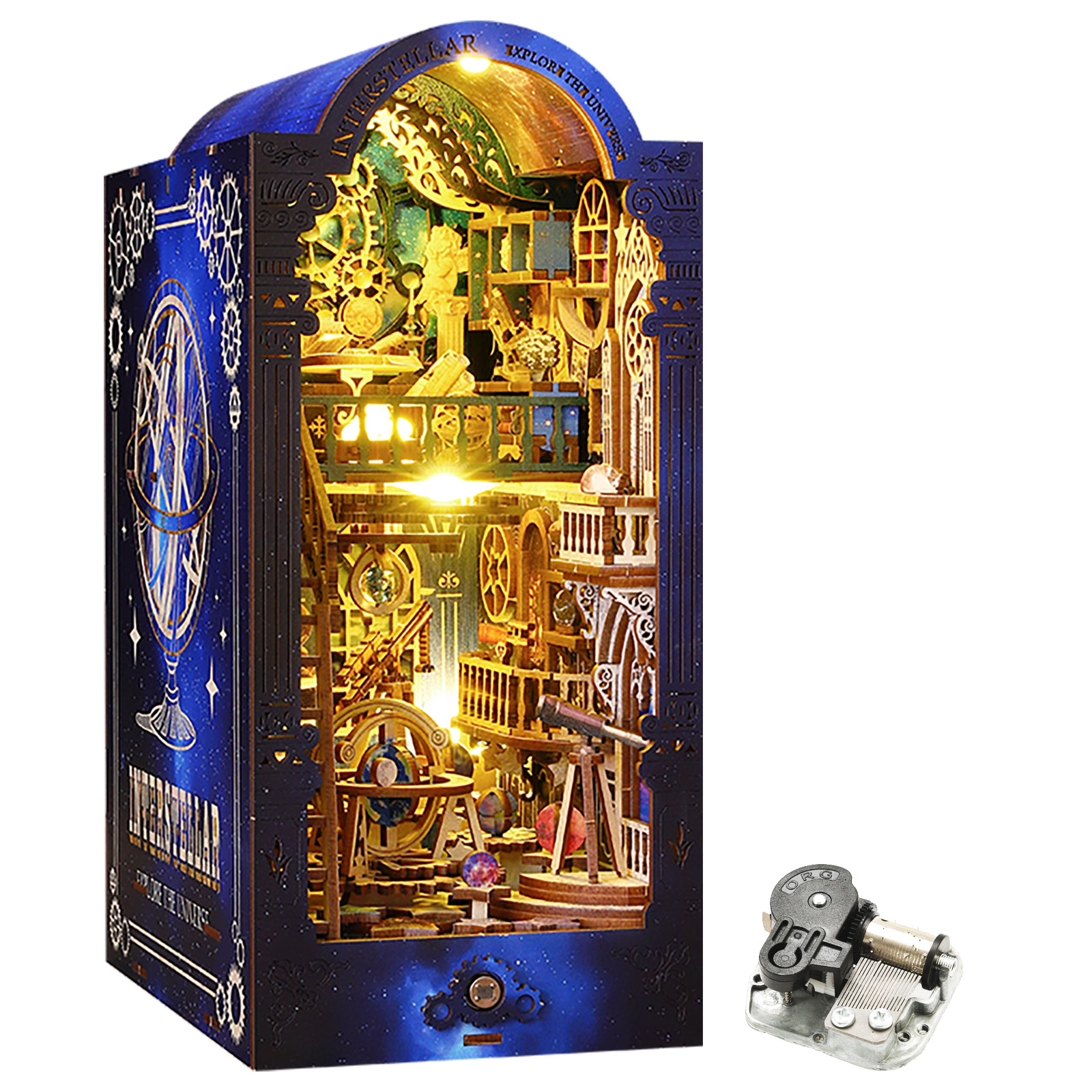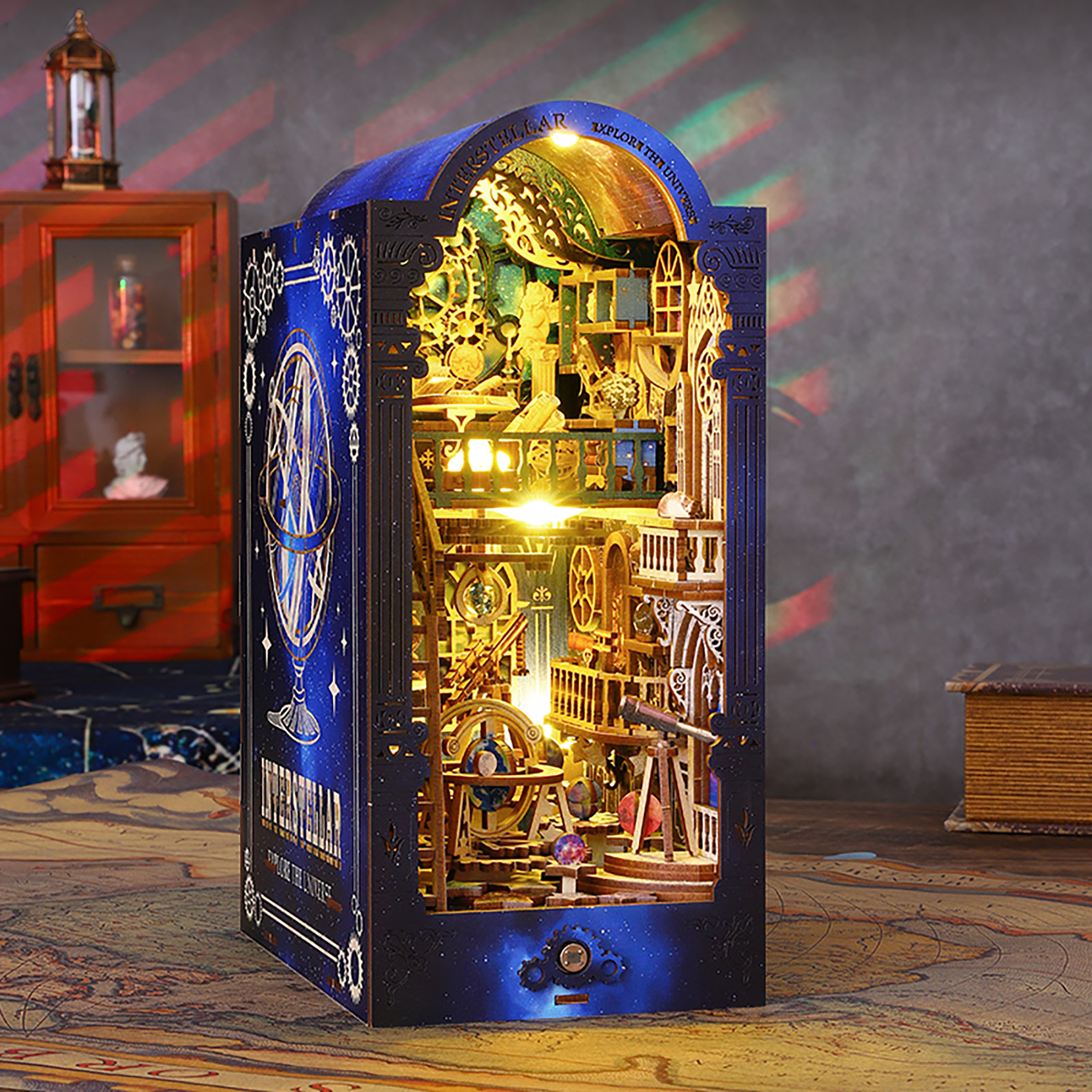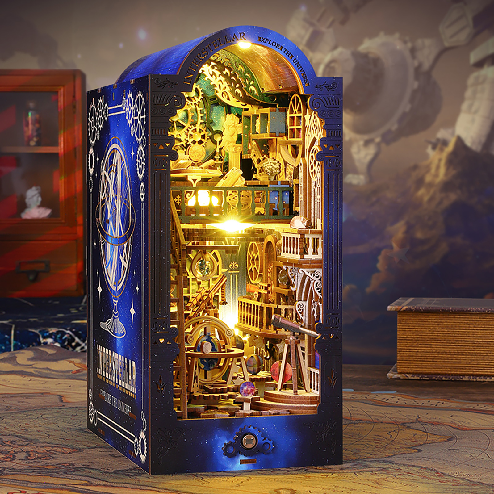 Transform your bookshelf into a portal to the cosmos with the Interstellar DIY Book Nook Kit — a stunning 3D wooden puzzle that combines detailed craftsmanship with interactive features like a sensor-activated LED light and moving gears. Perfect for adults who enjoy creative challenges, this vintage observatory-themed insert features high-quality wood, intricate elements like telescopes and globes, and offers an engaging DIY experience that sparks curiosity in astronomy and mechanics.