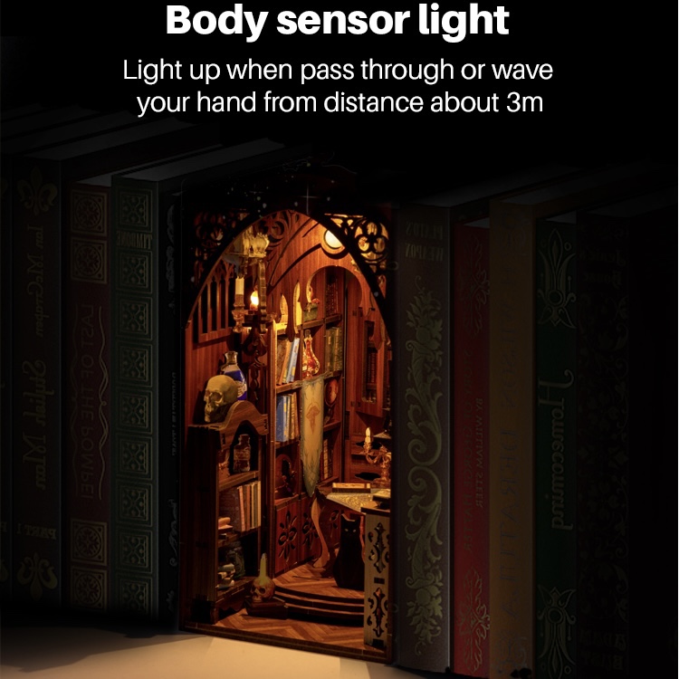 Welcome to the Magic Library DIY Book Nook Kit, where timeless elegance meets hands-on creativity! This enchanting miniature diorama pays homage to the traditional library — a sacred space of knowledge, wonder, and quiet charm. Featuring a motion-activated LED light that warmly greets you as you approach, this magical nook transforms any bookshelf into a storybook sanctuary.