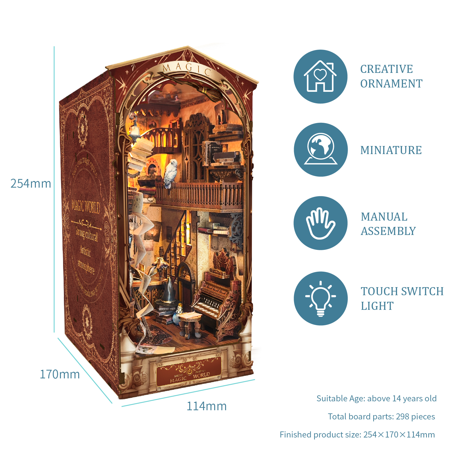 Step into a world of wonder with the Magic World DIY Book Nook Kit — a whimsical escape nestled between your favorite books. This beautifully crafted kit invites you to build an enchanting miniature scene, complete with touch-activated LED lighting, ready-to-use electronics, and high-quality wooden components. Each precision-cut piece brings charm and depth to your creation, turning your bookshelf into a portal to fantasy.