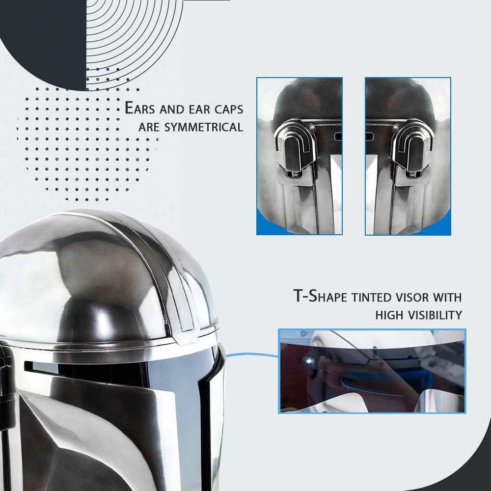 Mandalorian Beskar Helmet, featured in Star Wars: The Mandalorian series, is a captivating and iconic cosplay helmet from the Star Wars universe. It has been prominently worn by heroes in various Star Wars films, showcasing its significance and popularity among fans.