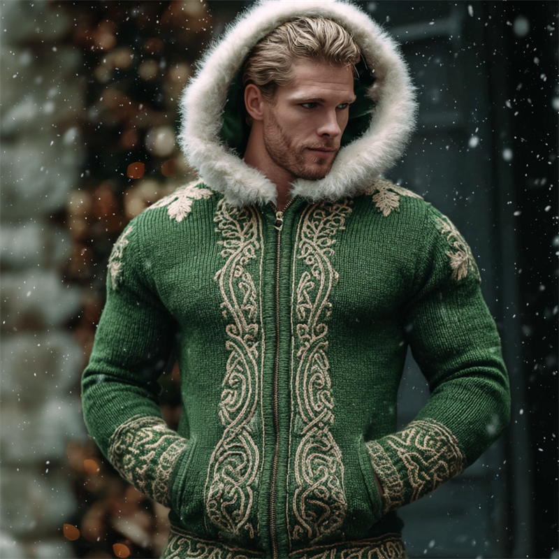 Men's Christmas Viking Elf Celtic Fur Hooded Cardigan