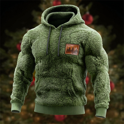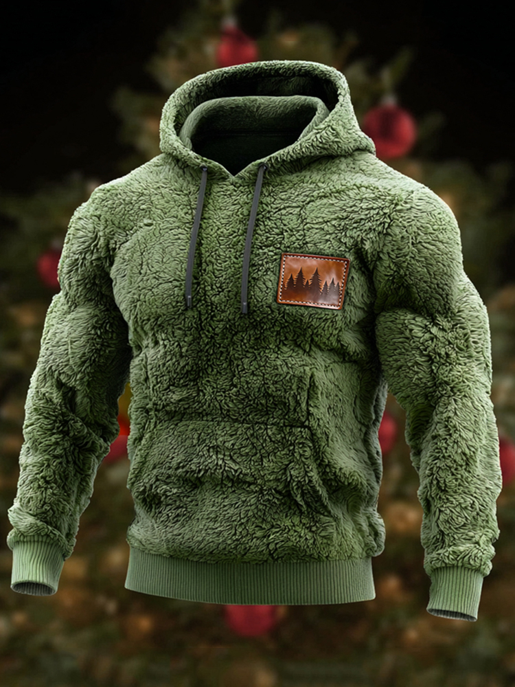 Men's Vintage Christmas Trees Forest Leather Patch Cozy Plush Hoodie