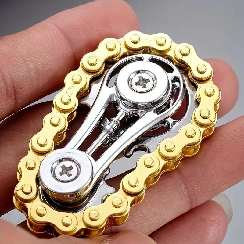 Forged from premium metal alloys, the Metal Chainring merges mechanical artistry with tactile therapy. Two precision-geared discs interlock with 26 articulated chain links (stamped 261-25H for industrial authenticity), creating a hypnotic kinetic sculpture that fits in your palm.
