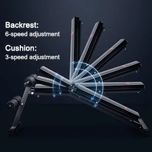 • 6 Back Positions & 3 Seat Positions: This is the new version sit-up bench with incline, flat and decline 3 seat position adjustable. There are 6 backrest adjustable angles that can be chosen with a marker. It can be easily adjusted to meet the different needs of your whole family.