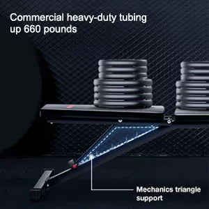 The weight bench is a commercial heavy-duty tubing up to 660 pounds, mechanics triangle support.