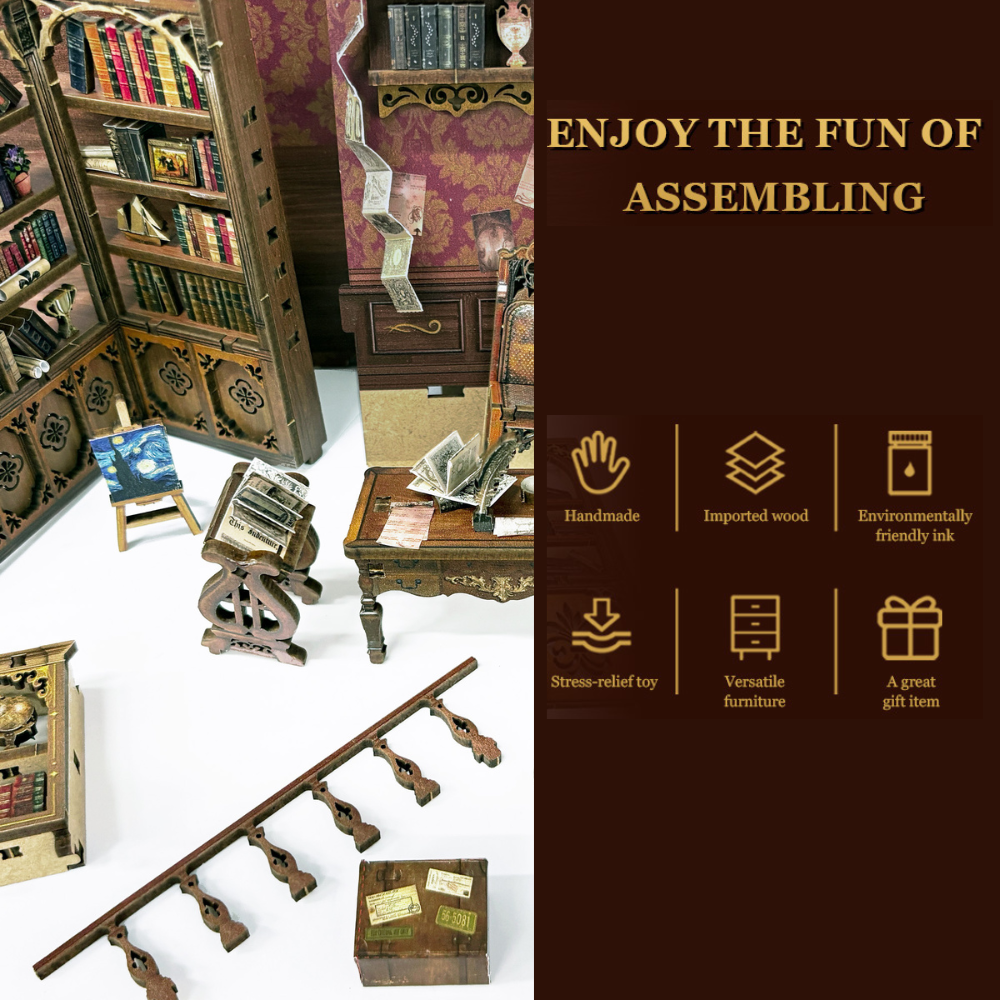 Enter a world where time stands still and stories live forever — the Time Book House DIY Book Nook Kit is a breathtaking tribute to vintage libraries and the magic of the written word. With ornate bookshelves, glowing candlelight, and intricate antique details, this miniature masterpiece transforms your shelf into a timeless sanctuary of knowledge and wonder.