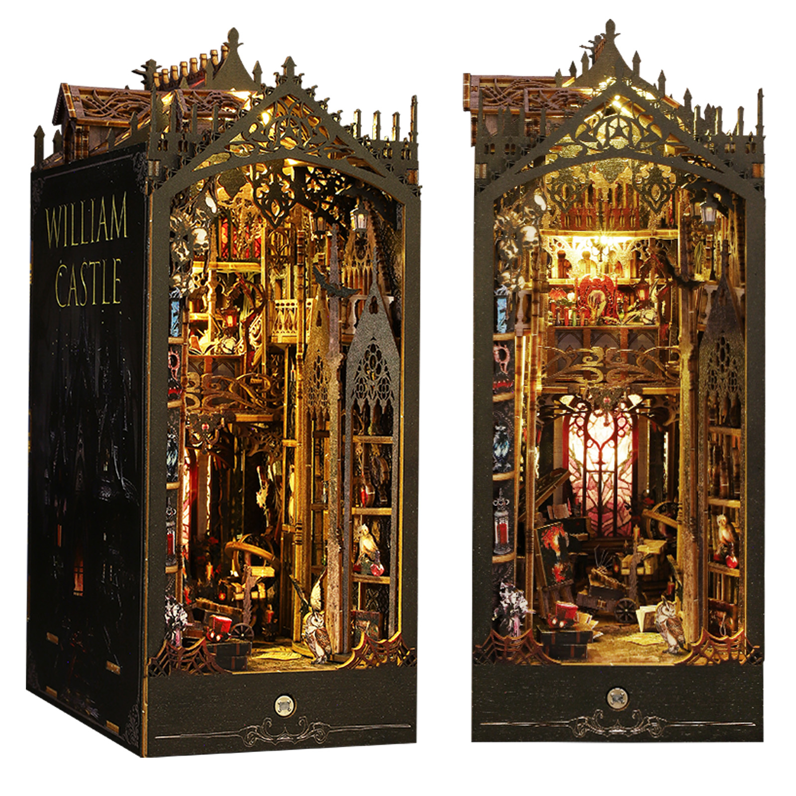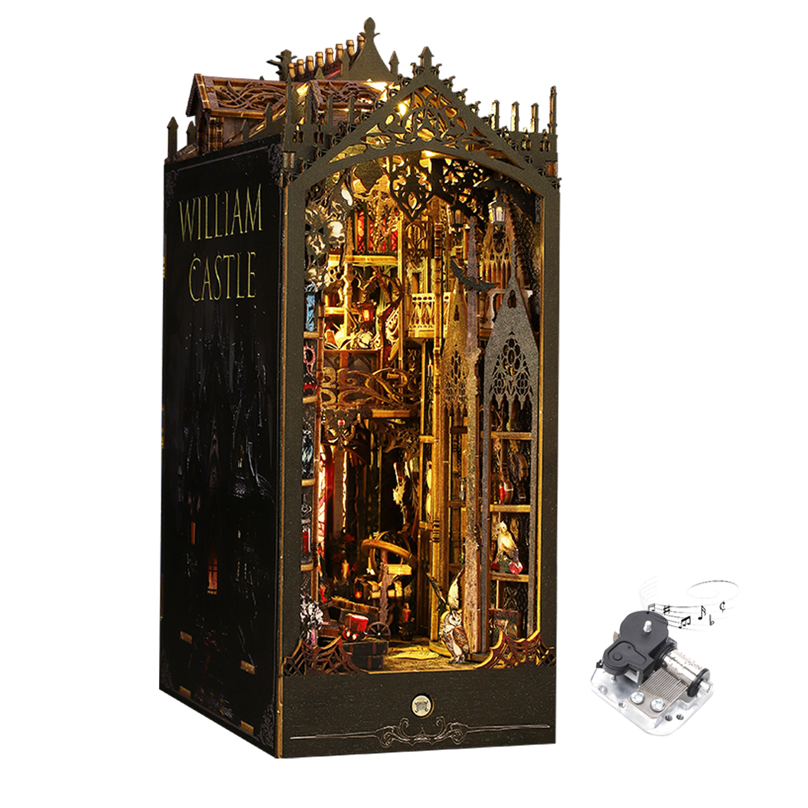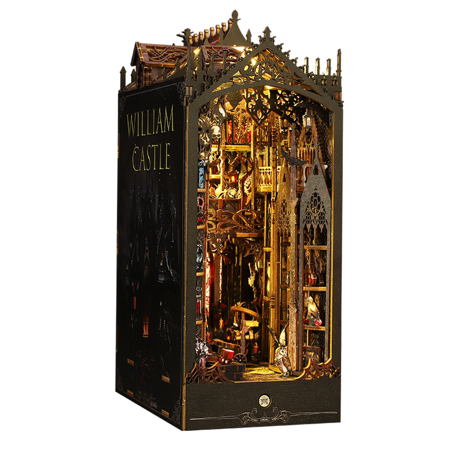 Step into a world of mystery and timeless charm with the William Castle DIY Book Nook Kit. Inspired by the elegance of gothic architecture, this kit lets you build your very own miniature castle — complete with an intricate design that adds a touch of old-world charm. Every corner of this nook tells a story, capturing the haunting magic of a bygone era.